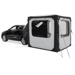 Two 60 cm deep side porches (storage space between the bedroom and the flysheet) that can accommodate the backpacks (from 50 to 70 L) of three occupants, mountain equipment and hiking boots.