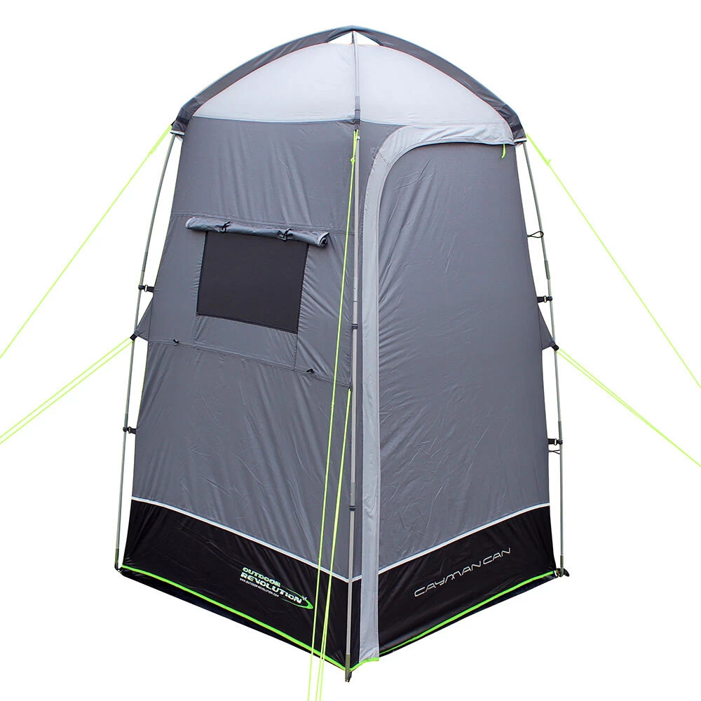 A simple but well constructed fibreglass poled toilet, utility, or storage freestanding tent for everyday use.